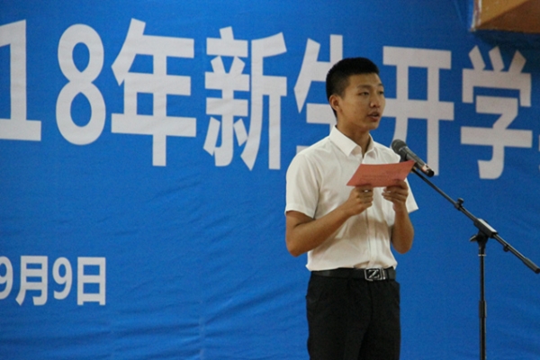 紧接着教师代表付天贵上台发言,他对2018级新生们的到来表示欢迎,希望新生们能为自己的大学生活做好规划,实现自己的梦想。
