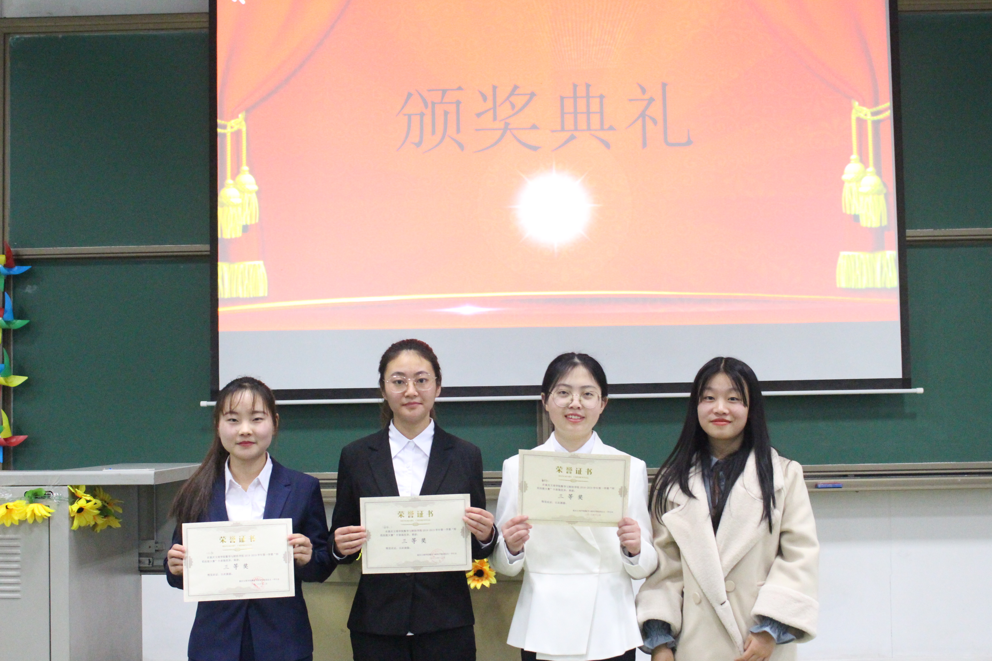 经过初赛与复赛的层层选拔,最终有11组队伍进入决赛。首先,进入决赛的11组队伍选出一名演讲的同学依次上台对本组作品进行讲解。风格各异内容丰富的黑板报、精炼生动精妙绝伦的语言演讲让比赛呈现出别样的风采。评委从报头、版面设计、内容、文字、插图、创意、作品讲解等方面综合考虑了黑板报作品的同时,也对演讲者的临场表现进行了打分。讲解结束后,付天贵上台逐一地对每组的黑板报作品进行了点评,并表达了对选手们的期许和希望。最后,“小鲜ru”队脱颖而出,荣获第一名,由付天贵主任为他们颁奖并与他们合影留念。