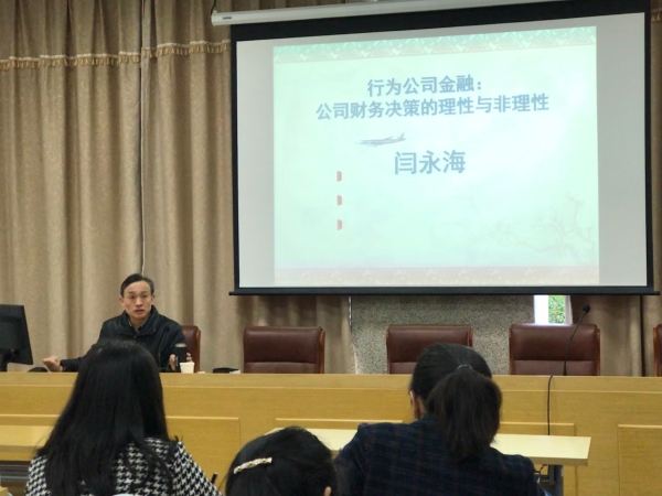 上午8:30,讲座开始。闫永海教授从公司财务与企业价值的关系,四大企业财务决策理论,以及行为公司金融理论的心理学基础着手结合实务讲解让学员们进一步理解行为公司金融。