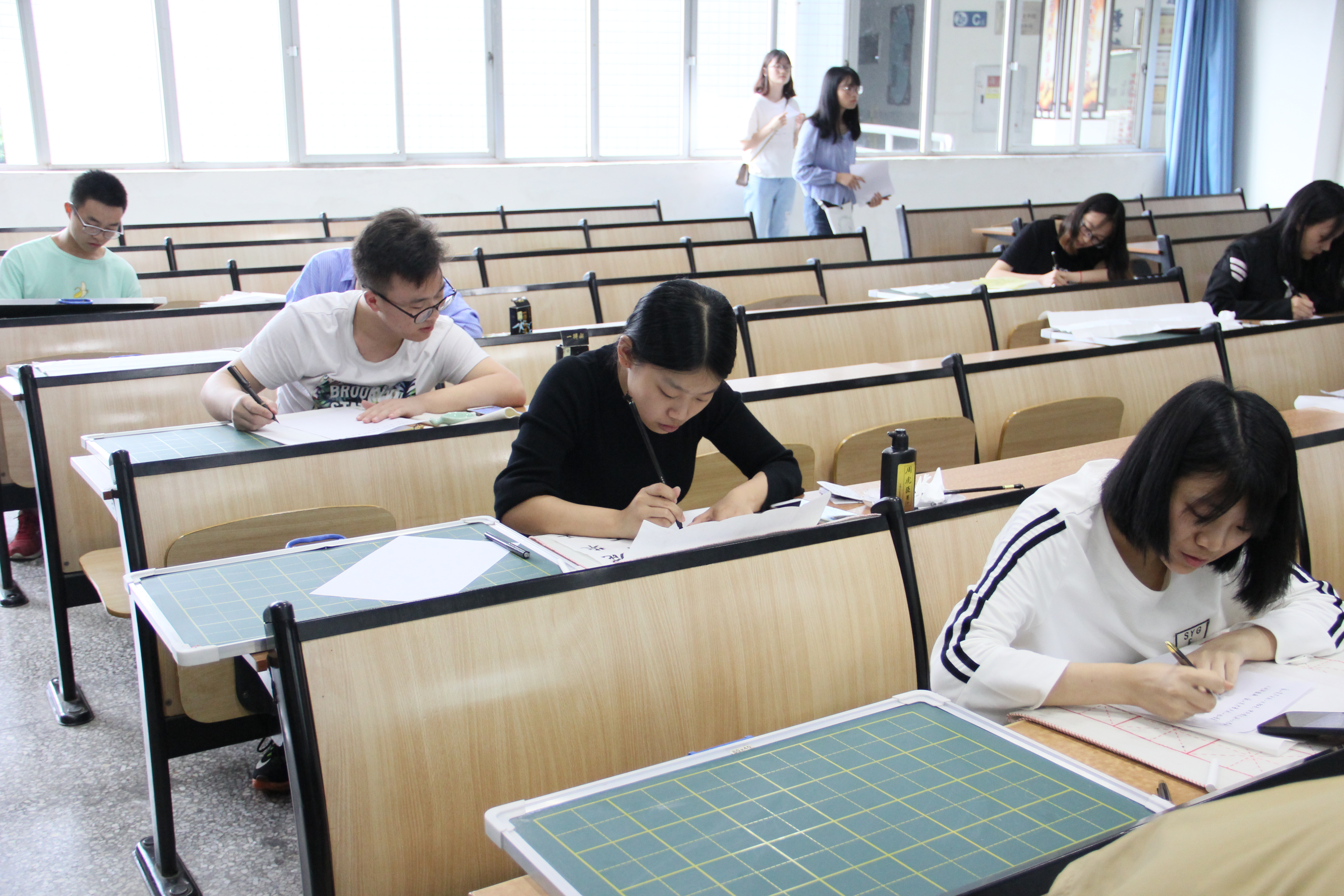 本次“三字一话”比赛以“亮出靓丽一字,说出精彩一话”为主题,把选手分成专业组和非专业组进行比赛。比赛分为两个部分:一是“三字”比赛,“三字”包括了软笔书法、硬笔书法和粉笔书写,能充分展示出选手们书法功底;二是“一话”比赛,初赛时选手们将朗读一段话并由评委根据普通话标准程度现场打分,决赛时选手们从选定的四个话题中抽取一个完成一个三分钟即兴演讲。比赛过程中,同学们一个个精神饱满,她们用笔墨和声音展示着自己对中华文字与语言独特魅力的个性解读,一字一句都仿佛是中华进化的历史。最后,付天贵和李亚对本次比赛进行了点评总结。首先,他们肯定了每位选手的精彩表现和勤奋用功,然后付天贵提出同学们应加强毛笔字的练习,有利于养成好的书写习惯,并希望同学们再接再厉,将书法功底练习得更加扎实,李亚老师则鼓励同学们克服方言困难,可以多收看新闻联播提升自己的普通话水平,要勇敢站上讲台展示自我。