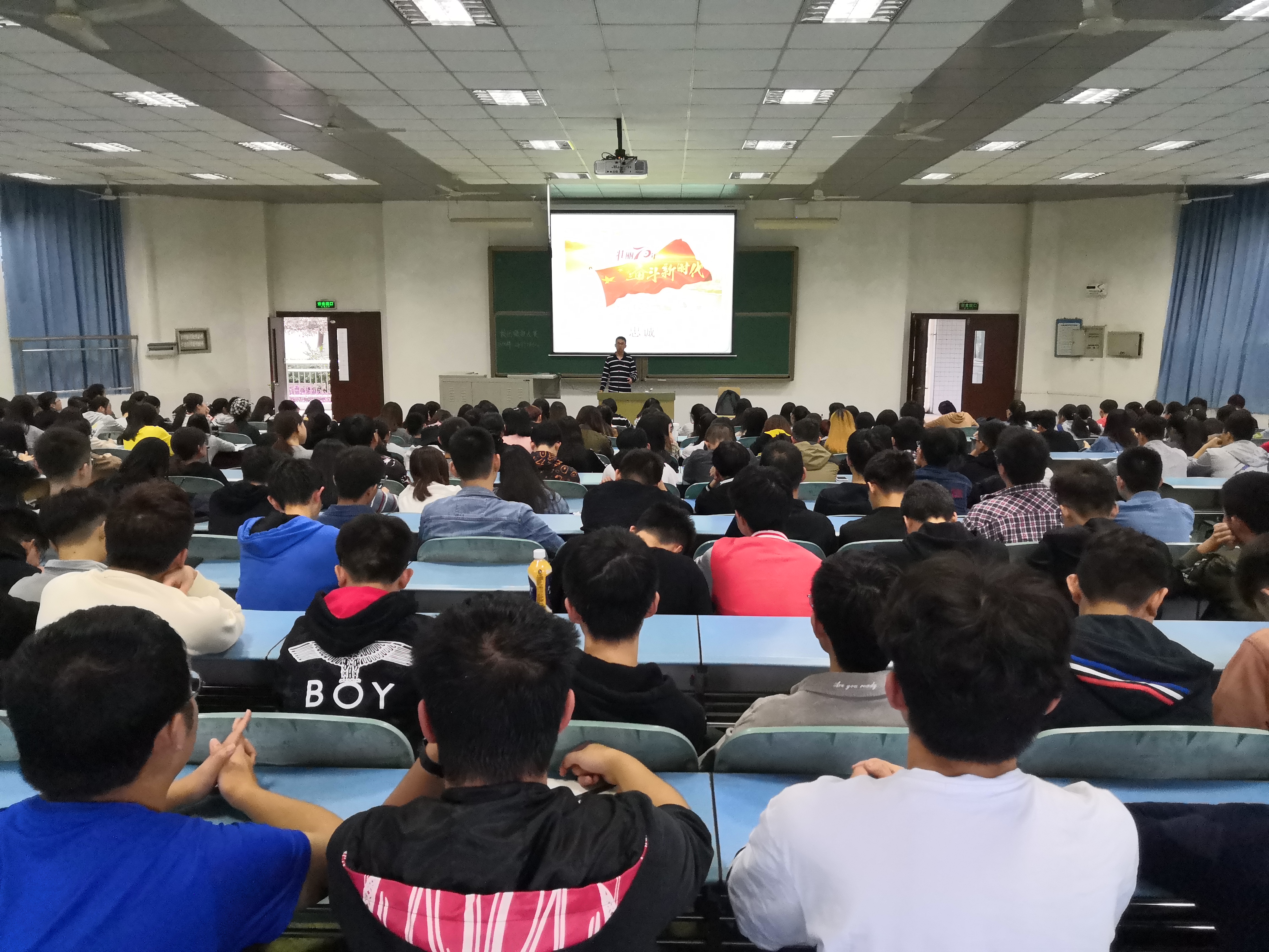 黄华老师围绕“忠诚”、“担当”、“奉献”、“感恩”四个关键词展开讲了四个方面的内容。结合庆祝中华人民共和国成立70周年庆典,他首先讲了70年来中国共产党带领中国人民取得的巨大成就,他希望同学们能用心去体会中国共产党人的初心和使命,他要求同学们忠于党、忠于祖国、忠于人民、忠于家庭。他相信每位同学进入大学校园那一刻都有自己的初心,他要求同学们要为这个初心努力学习,为毕业走向社会做好充分的知识储备,这才是大学生应有的担当和作为。面对当前这个时代,他也希望同学们少一些浮躁,多一分成熟;少一些计较,多一分奉献,他坚信任何坚持和付出都会有守得云开见月明的那一刻。最后他要求同学们学会感恩,感恩这个美好的时代、感恩自己伟大的父母、感恩我们无私的老师、感恩一路奋斗的同学。黄华副书记以“无奋斗,不青春”结束了本次讲座后与很多围过来的同学做了进一步的交流和探讨,并认真回答了同学们关心的一些问题,听取了同学们的意见和建议。