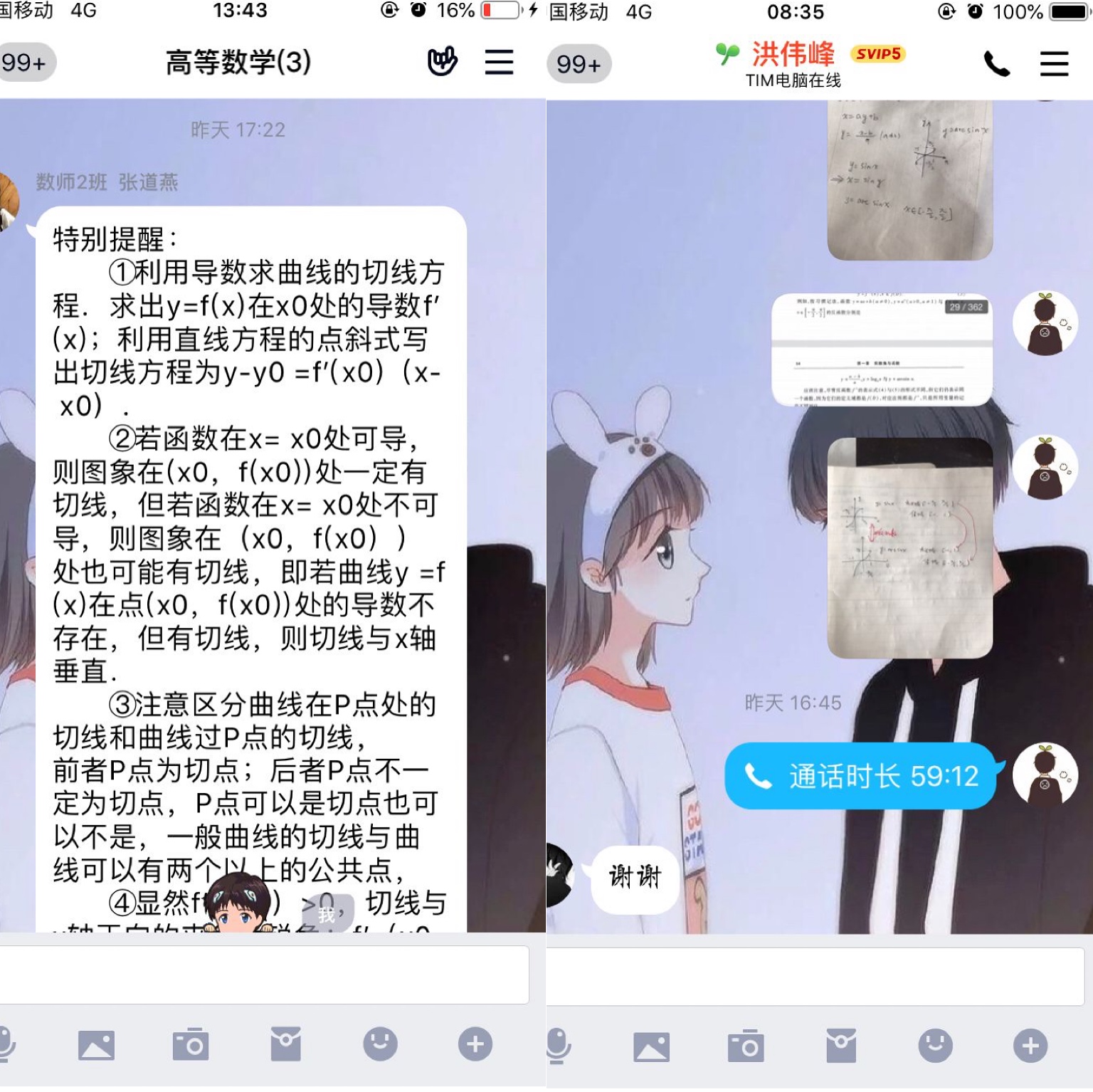 2018级数学与应用数学(师范)专业学生刘浩云和张道燕,应团委号召,主动做志愿者为一名父母奋战在防疫一线的中学生辅导高等代数等数学知识。为了提高辅导的效果,刘浩云和张道燕每天会提前2个小时进行讨论和查阅相关资料,固定每日下午五点,通过线上连麦的方式进行线上辅导,认真解答每个知识点,让中学生的父母能更放心地在前线工作。