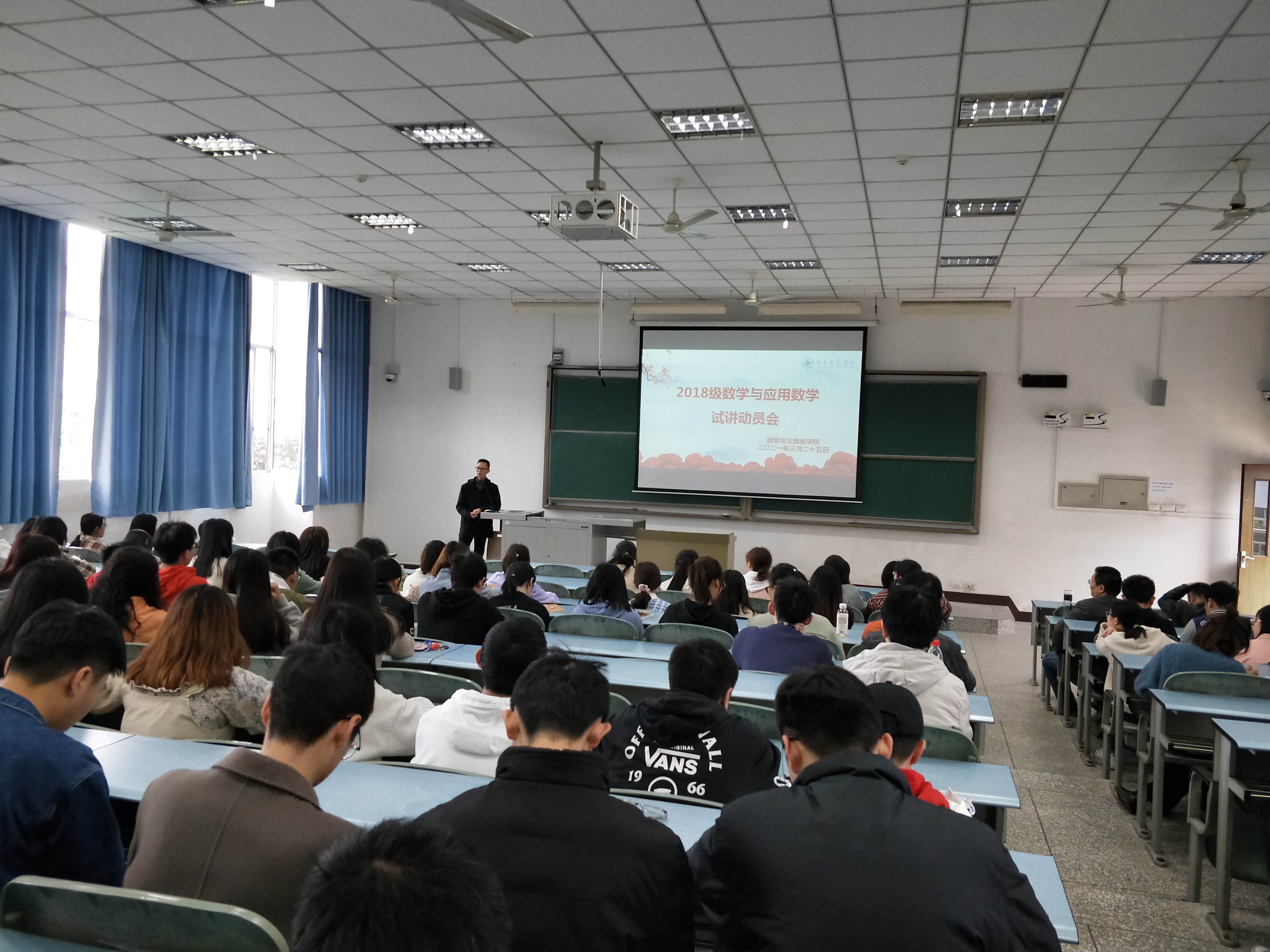 2021年3月25日下午4:30,英国上市公司365在知津楼红河十阶组织了试讲动员会。参加此次试讲的学生是2018级数学与应用数学(师范)专业123名同学,指导教师包括7名院内指导教师和10名中小学一线教学专家。分管教学副院长陈晓东主持了此次动员会。