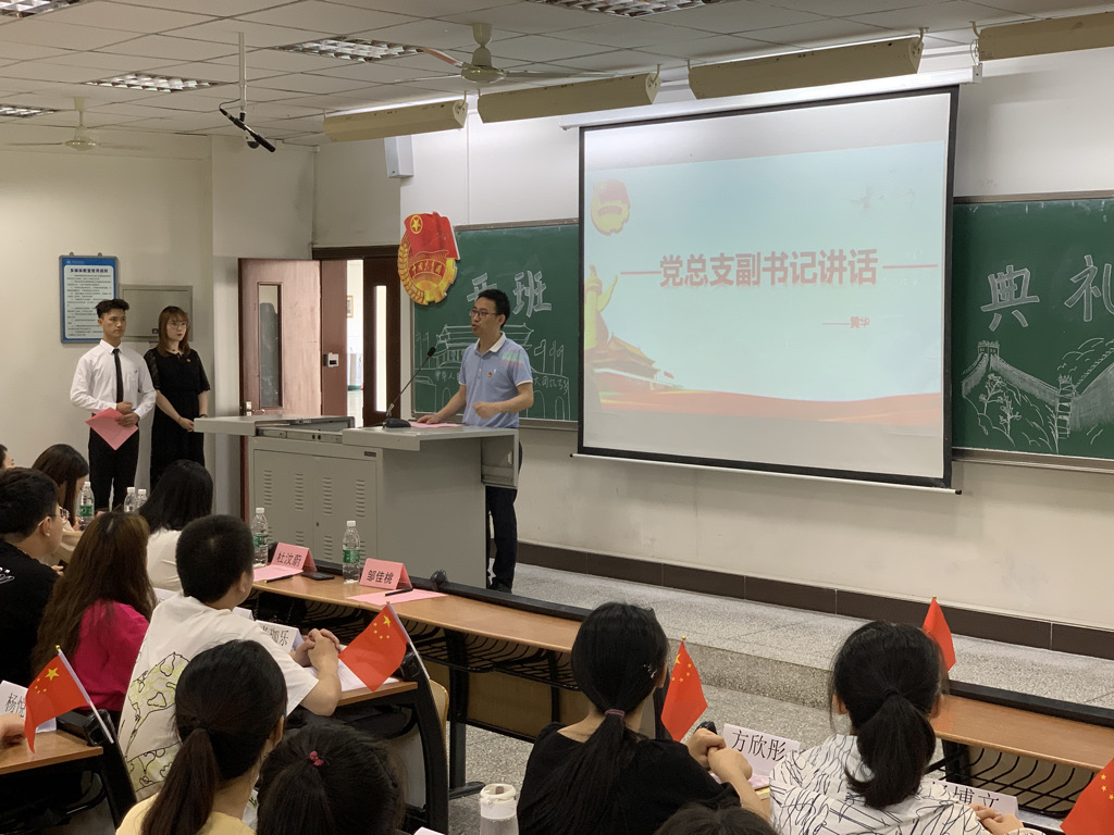 开班典礼正式开始,在全体起立,齐唱中国共青团团歌后,邹佳桃老师带领全体学员重温入团誓词。随后,黄华副书记进行发言,黄华副书记从提出我们要做什么,怎么做这一问题,到简述国家的慢慢发展与崛起,希望学员能坚定理想信念,做好接班人准备。然后吴金航同学为学员宣读了本次团校的管理办法以及相关要求,并且就团校的课程安排进行了介绍。最后由黄华副书记代表授旗,开始授旗仪式,宣布开班典礼正式结束。