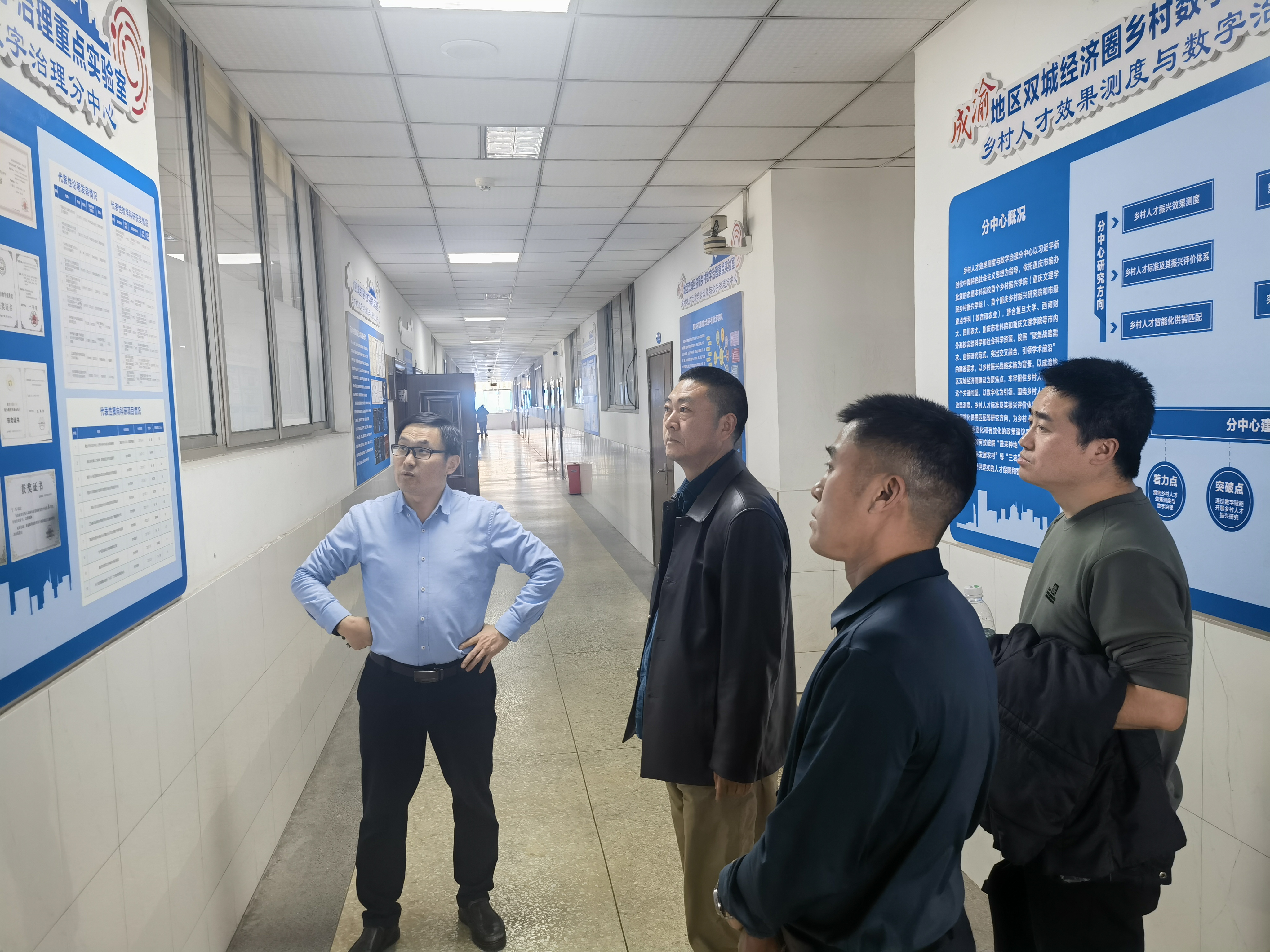 调研组随后参观了学院多维数据感知与智能识别重庆市工程研究中心,副院长马新强教授向调研组演示了团队自主研发的数据智能平台等标志性成果。冯勰副教授针对调研组关注的物资储备系统重点介绍了智慧仓储物流园区解决方案,王刚副处长对相关系统和技术落地成效给予高度评价,达成初步合作共识,并希望双方后面能够进一步加强交流,通过智能化手段使物资储备更高效、更准确。