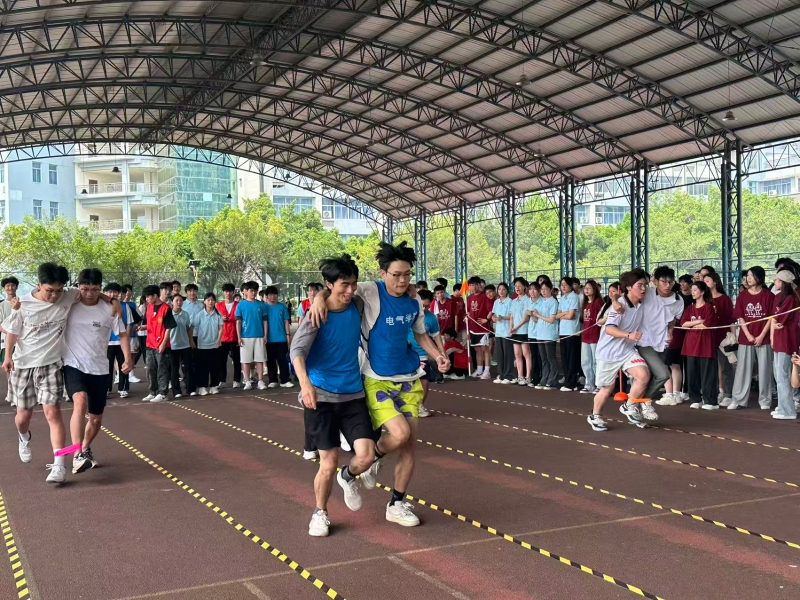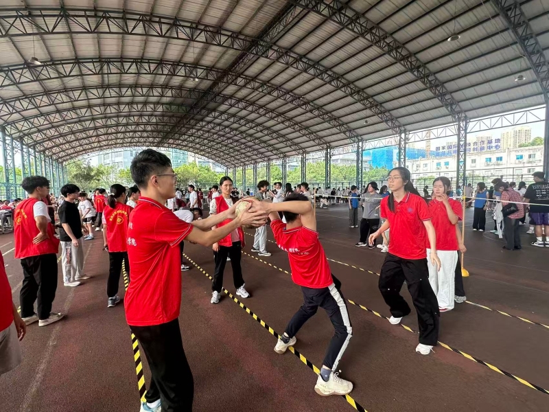本次运动会设置了小兔跳跳、2人3足、2人夹球接力、空当接龙、呼啦大接力等趣味项目,既考验同学们的身体素质,又注重团队协作精神与心理韧性的锻炼。各学院积极响应,组建队伍参赛。比赛现场气氛活跃,趣味横生。随着裁判员的一声声哨响,各参赛队队员们齐心协力、奋勇争先,现场同学们的呐喊助威在赛场上空荡漾,运动会沉浸在一片欢乐和谐的氛围中。
