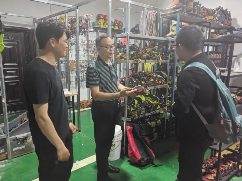 工作室成员一行在卢百灵校友的带领下,参观了该公司办公场所、抖音直播间以及公司部分产品,随后双方在会议室就户外运动的发展、户外运动的安全、户外运动的项目课程开发等方面进行了深入交流。