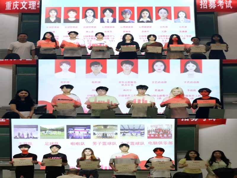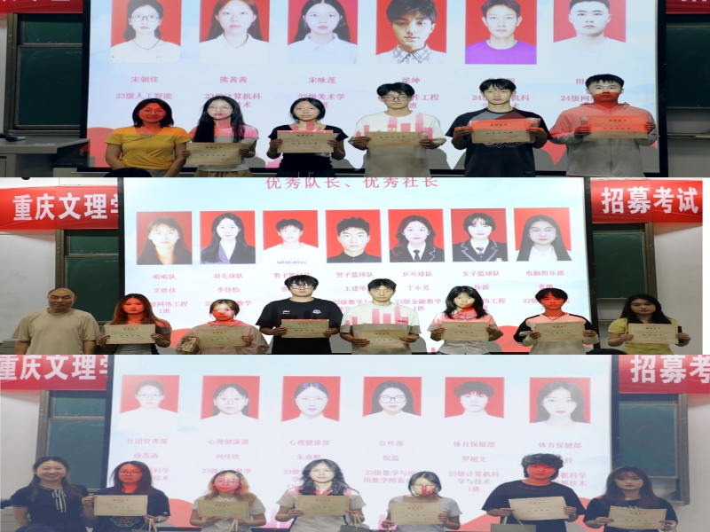 最后,学院对本学期表现优秀的先进团体和个人进行表彰。在激昂的音乐声中,优秀部长、队长、社长、干事、队员、班委及志愿者等依次上台领奖。这一份份表彰不仅是对他们在过去一学期中辛勤付出的充分肯定,更是对他们在各自岗位上所做出突出贡献的高度认可。